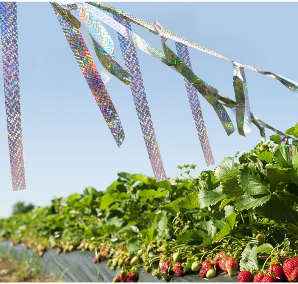 - Safe & Wide Application - This holographic flash ribbon reflects light and creates sound to scare birds - a safe and effective way to protect your houses, fruits, trees, etc. It is used widely in farm, garden, balconies, fences, pools, lawns, floowers beds, furniture decorations, vegetable plots.