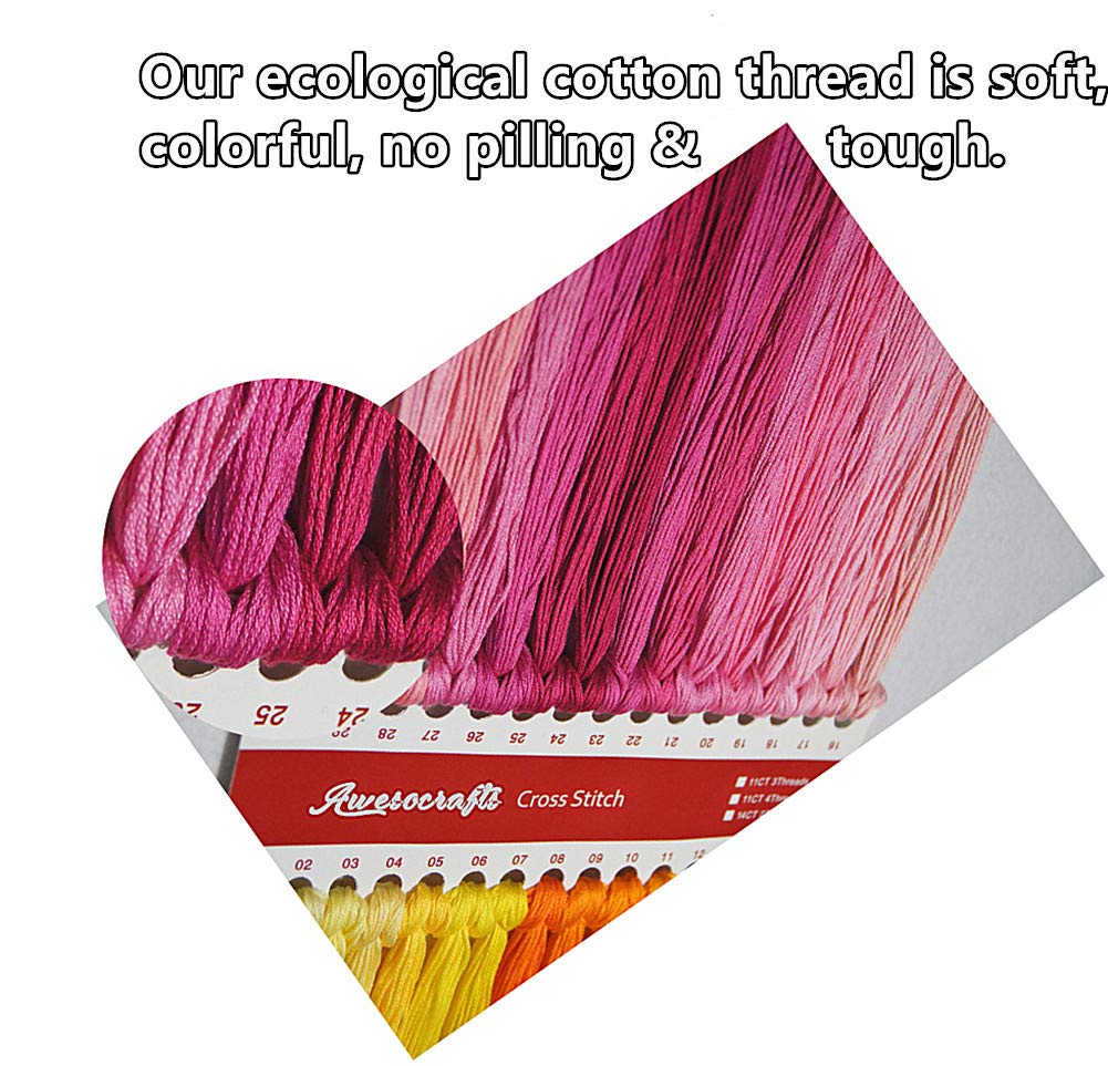 - ✜ Easy & Fun: Perfect for all ages, beginners, kids, adults or advanced stitchers. Awesocrafts DIY cross stitching kit includes presorted cotton thread, top quality fabric(2 options), needles and English instructions