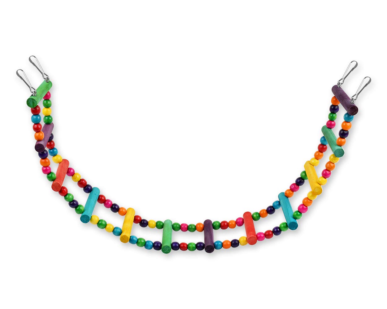• Makes Your Birds Happy - Birds like bright colors and swing on ladders - The natural wood dowels are spaced 6 cm apart by colored beads (random colors)