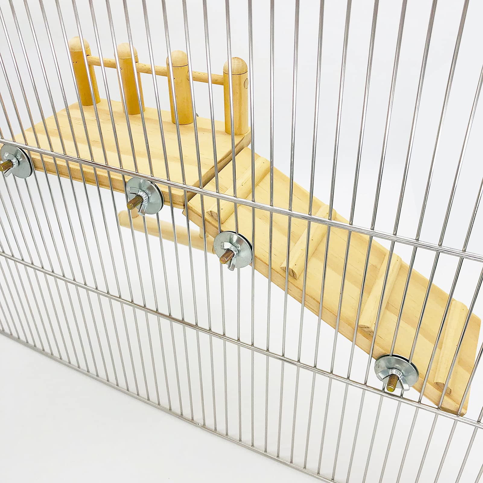 - MATERIALS: Assembled mainly from natural wood and mounted to the inside of the cage with nuts and screws.