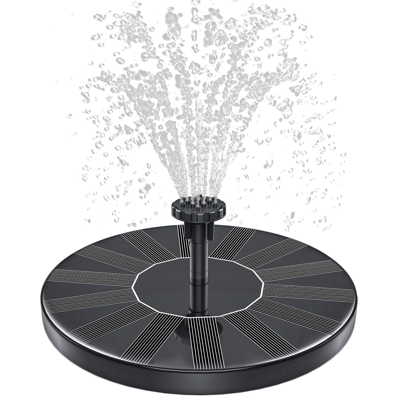 - [Multiple spray patterns]: It comes with 6 different types of nozzle heads. You can change the nozzles to adjust the water height easily. with a spray height of 40-60cm. The exclusive fixer is designed to avoid the solar fountain from moving randomly. Just enjoy the serenity from the trickling sound of water in a soft breeze.
