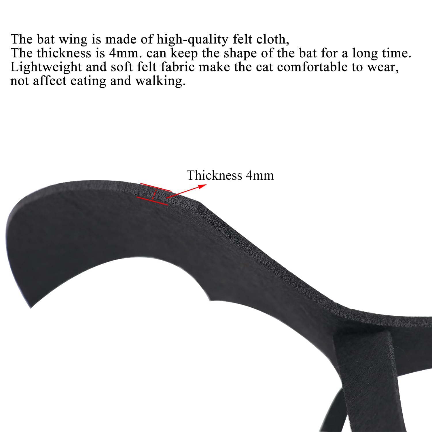 - 【Material】This bat wing is made of 3mm high-quality felt cloth. The lightweight and soft felt fabric make pets comfortable to wear, not affect eating and walking.