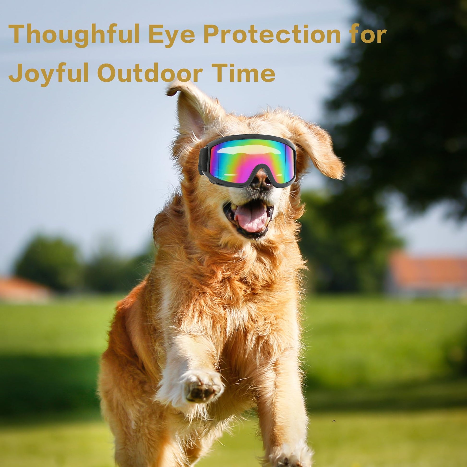 - Get your dog a pair of sunglasses, whether he is poking heads out of the window while driving, or running outdoors during the sunny summer days, the large dog glasses can prevent his eyes from getting hurt by the strong sunlight or foreign objects.