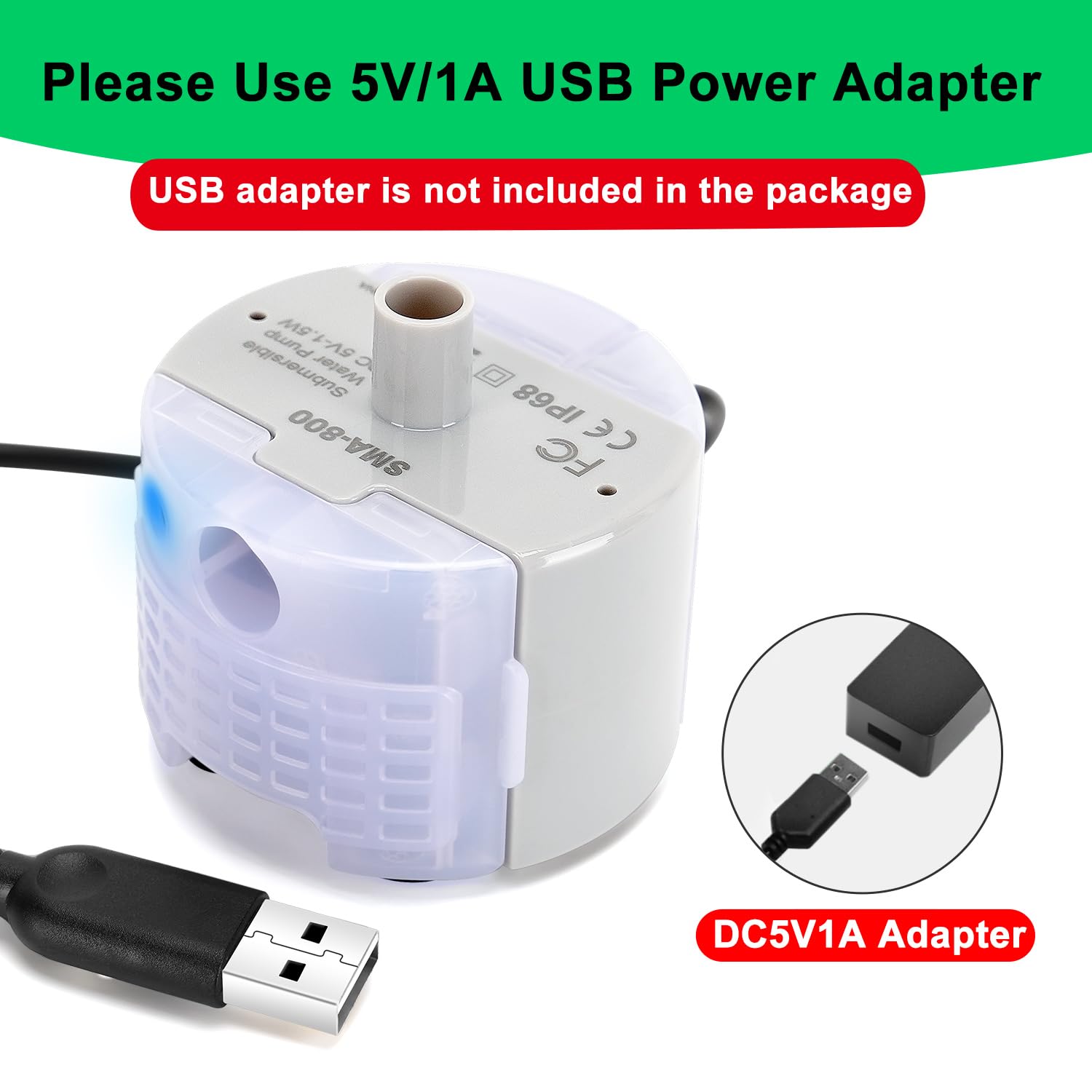 - 😻[Long Life Span]DC 5V low voltage,IP68 Waterproof.Please use 5V/1A USB power adapters. (USB adapter is not included in the package).