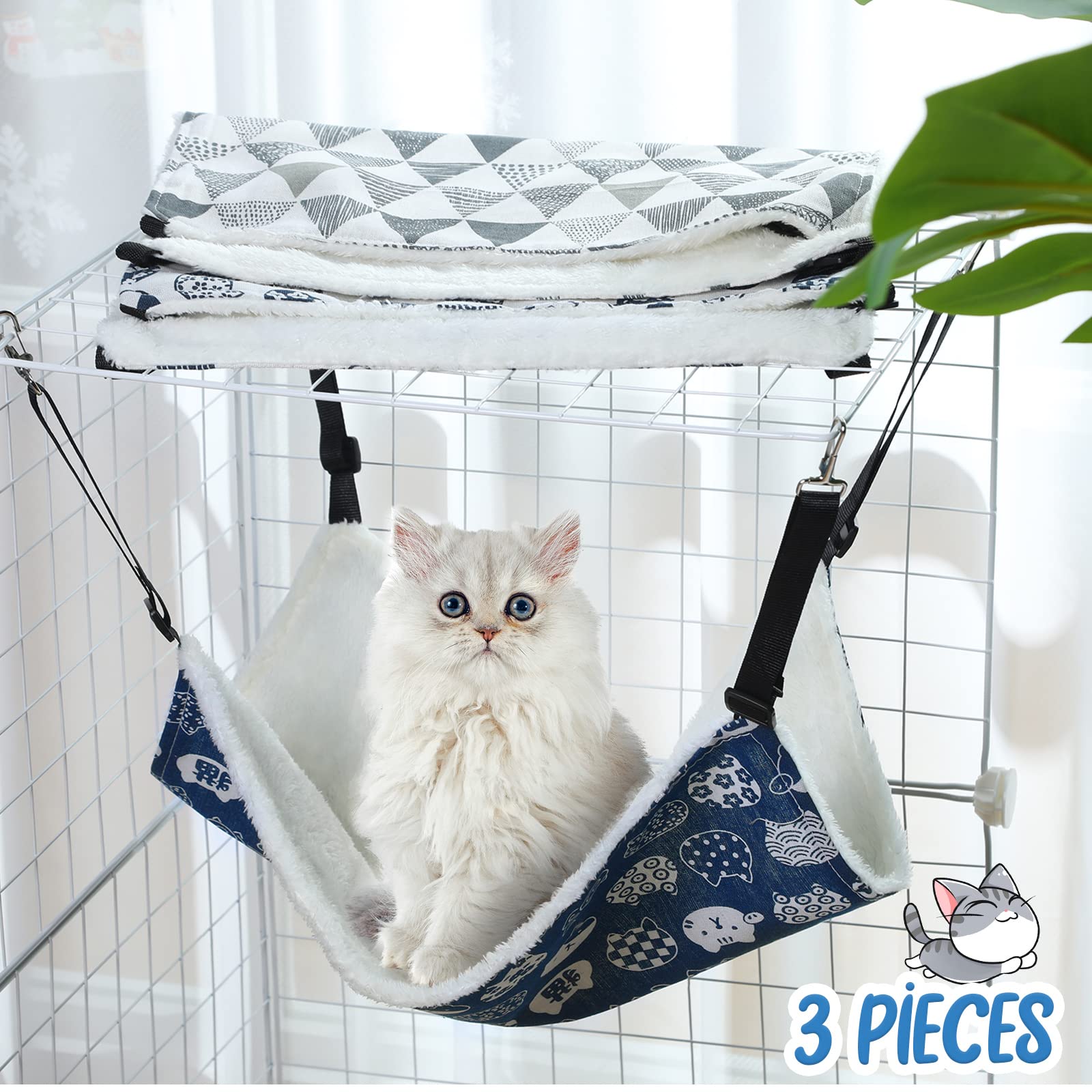 - Package Listing: you will get 3 pieces of hammock for cats, with a size of 53 x 35 cm/ 20.87 x 13.78 inches, suitable for most small animals, please measure the size of pet's hands and feet before purchasing; There are 3 styles of pattern, such as gray triangle, cat to make your pet more attractive and eye catching