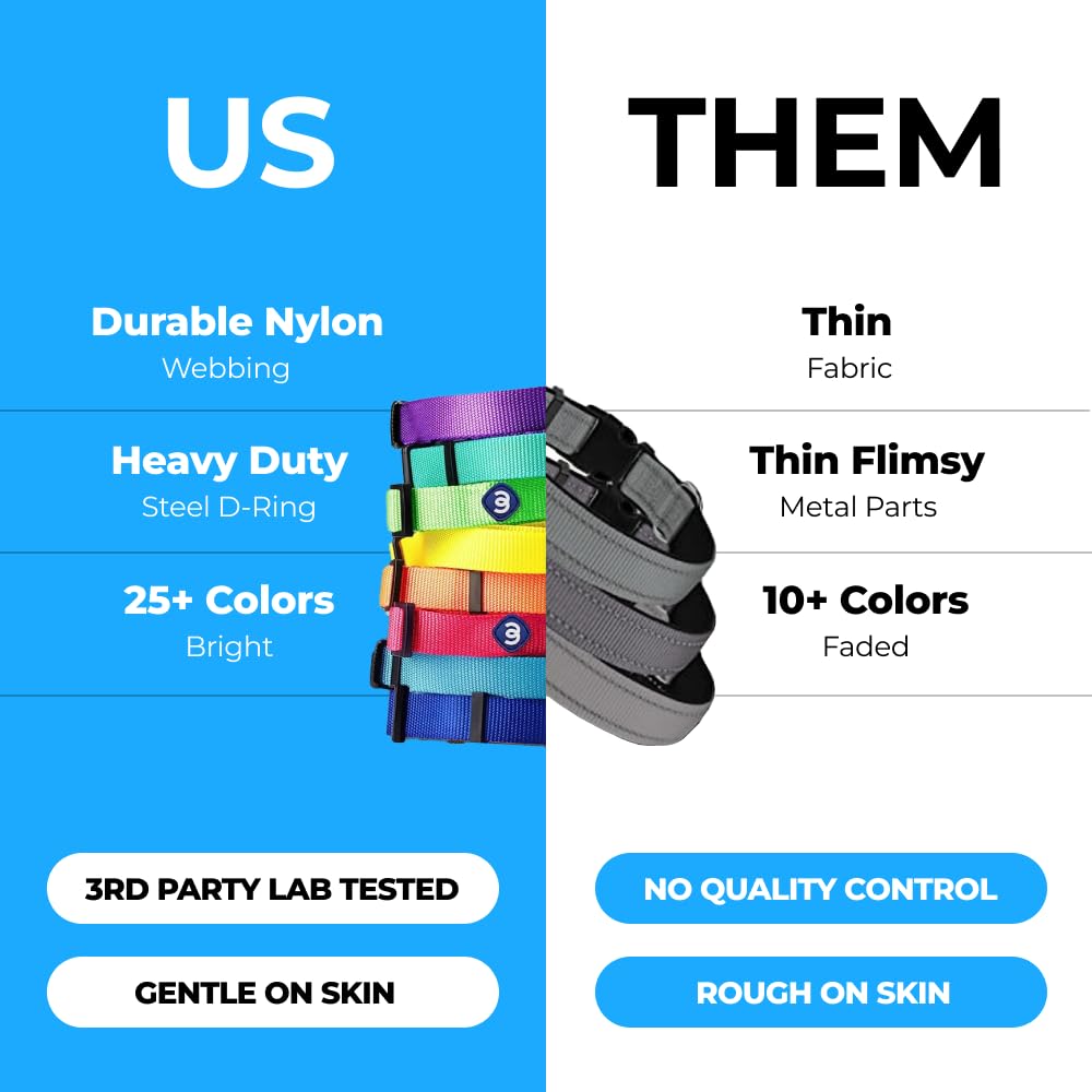 - This Small dog collar is designed with high-density nylon webbing, making it a comfortable dog collar. Perfect for Small dog collars, ensuring a snug fit for dogs with a neck size of 12"-16".